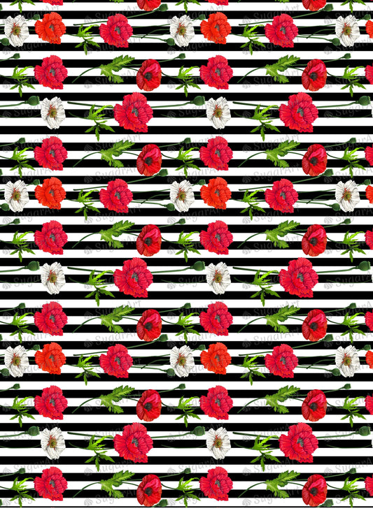 Red Poppy Flowers Pattern Striped - BSA071