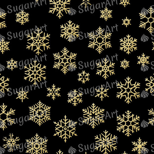 Golden Snowflakes on Black Background - Icing - ISA128