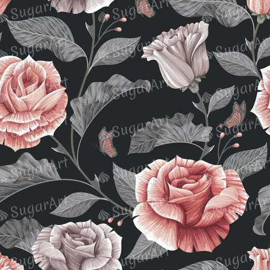 Dark Vintage Roses Pattern - Icing - ISA243