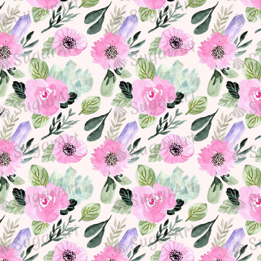 Pink Floral Crystal Watercolor Pattern - Icing - ISA092