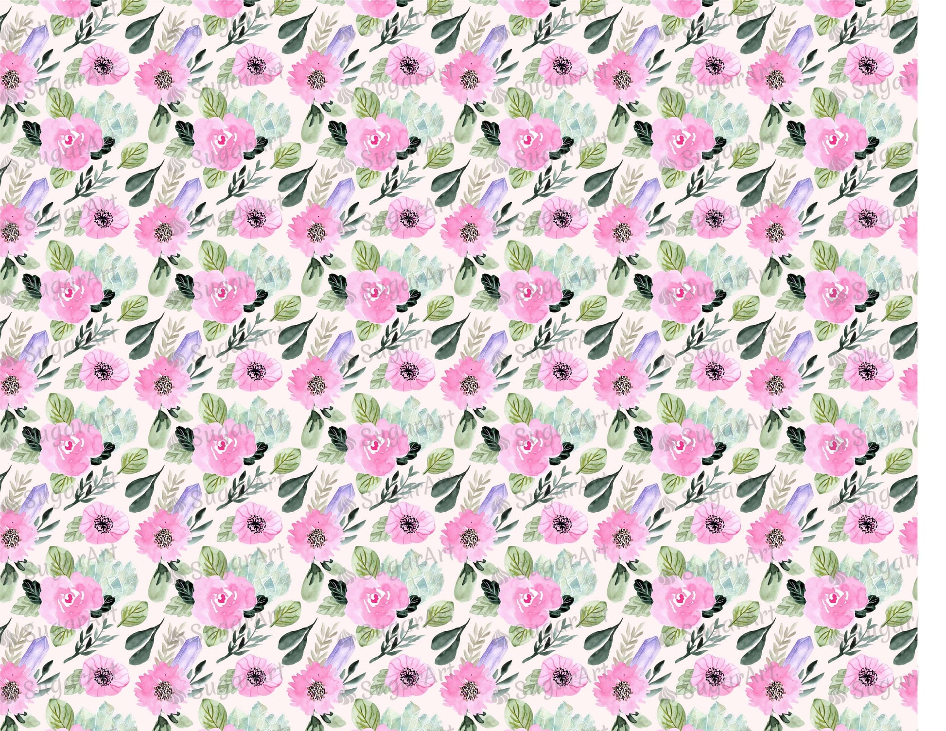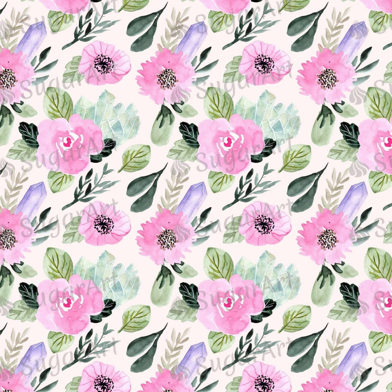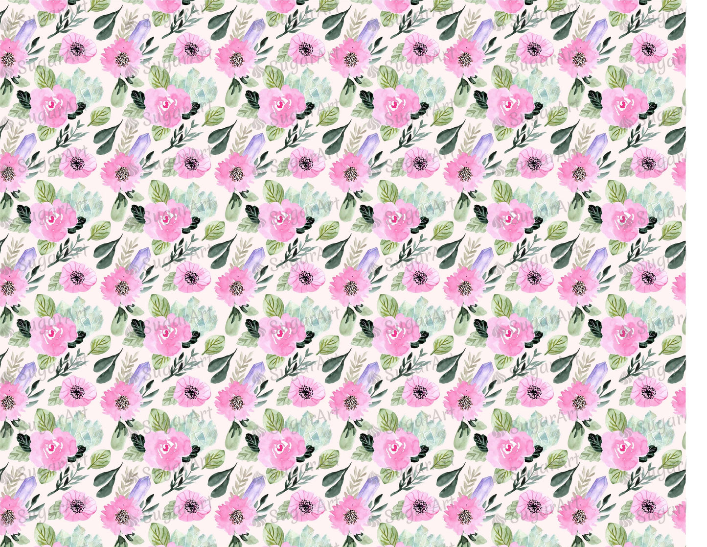 Pink Floral Crystal Watercolor Pattern - Icing - ISA092