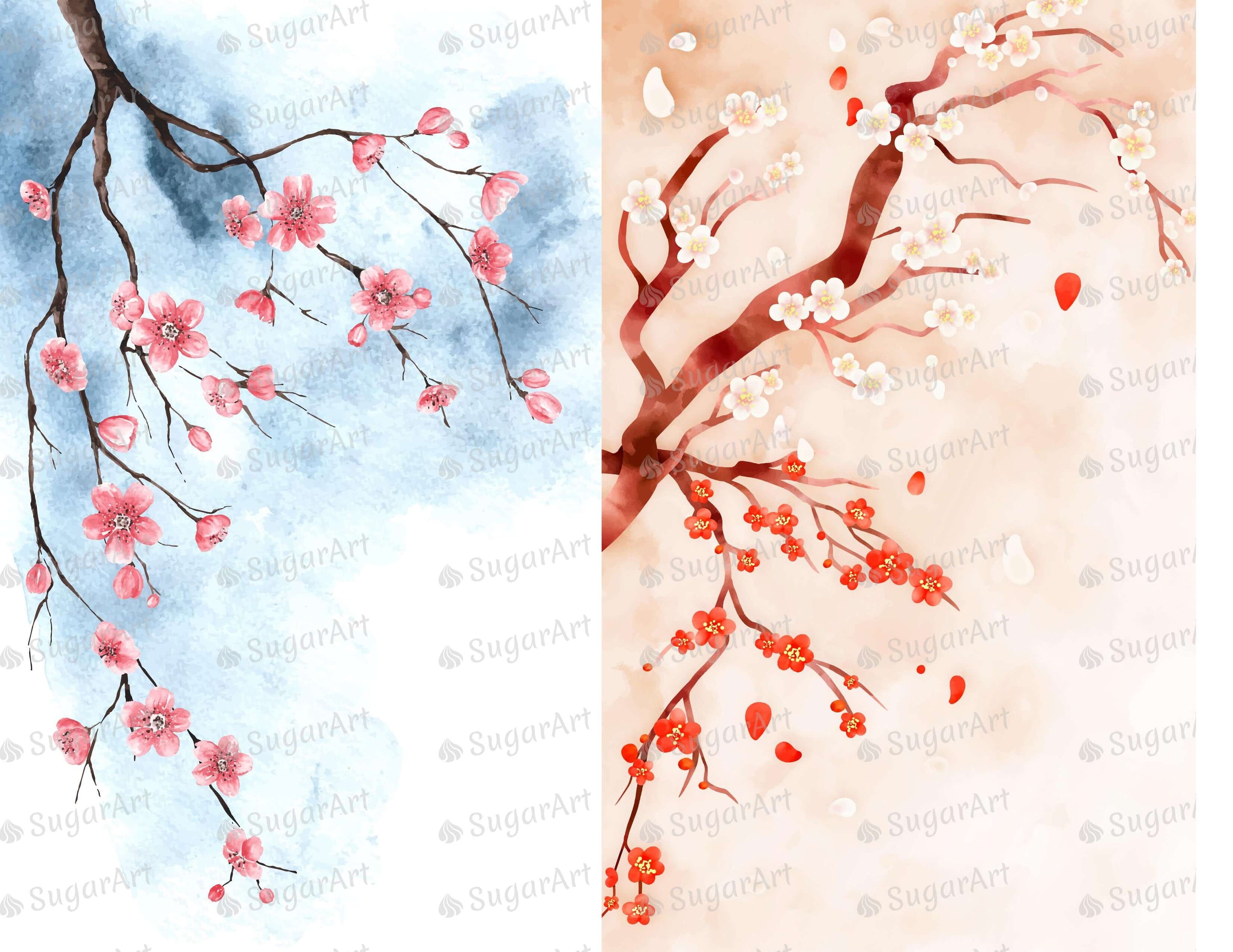 Two Watercolor Cherry Blossom - Icing - ISA238