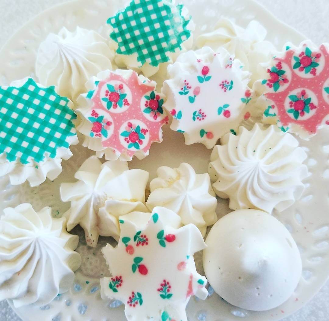 Sugar Stamps are oven safe (up to 80°C / 176°F) and are used instead of lining paper/aluminum foil during baking/drying of meringues. Right after drying is done, meringues are removed from the sheets. That is how easy it is to use them!